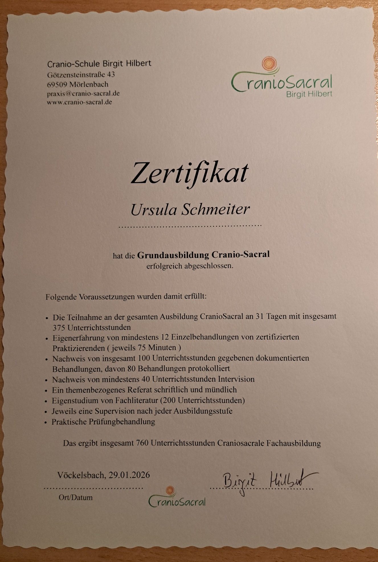 Im Januar wurde meine Cranio-Sacrale  Arbeit zertifiziert.